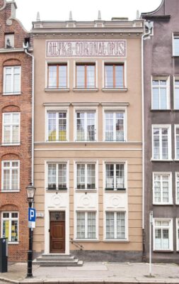 Location: The buildings are in an area designated as a heritage site. They form part of the historic urban layout of the city of Gdańsk. Ogarna Street was destroyed in 1945 during the war. It was rebuilt on the basis of the so-called Zachwatowicz plan that envisaged the reconstruction of historical forms, which was only feasible in the form of a workers’ housing estate. The erected block of flats was covered by a historicist façade screen. The buildings thus created were the result of combining two houses into a complex with a common staircase, an entrance from the courtyard and an even top line of windows emphasising the block-like nature of the premise. The elevations were not completed with architectural decoration.